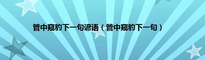 大家好,管中窥豹下一句谚语,管中窥豹下一句很多人还不知道,现在让我们一起来看看吧!