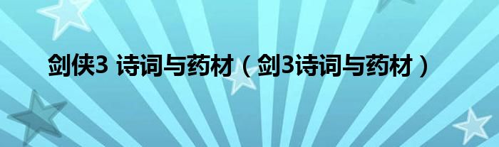 大家好,小问来为大家解答以上问题。剑侠3 诗词与药材,剑3诗词与药材这个很多人还不知道,现在让我们一起来看看吧!