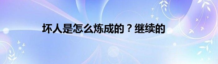 大家好,小问来为大家解答以上问题。坏人是怎么炼成的?继续的这个很多人还不知道,现在让我们一起来看看吧!