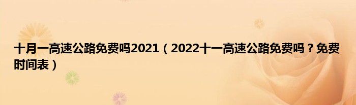 本文,十月一高速公路免费吗2021,2022十一高速公路免费吗?免费时间表到此就分享完毕,希望对大家有所帮助。