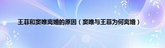 本文,王菲和窦唯离婚的原因,窦唯与王菲为何离婚到此就分享完毕,希望对大家有所帮助。