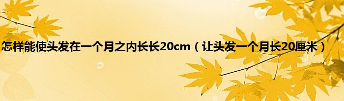 大家好,小问来为大家解答以上问题。怎样能使头发在一个月之内长长20cm,让头发一个月长20厘米这个很多人还不知道,现在让我们一起来看看吧!