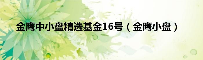 大家好,小问来为大家解答以上问题。金鹰中小盘精选基金16号,金鹰小盘这个很多人还不知道,现在让我们一起来看看吧!