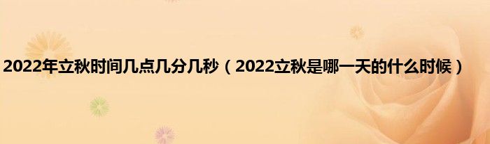 本文,2022年立秋时间几点几分几秒,2022立秋是哪一天的什么时候到此就分享完毕,希望对大家有所帮助。