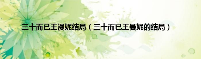 大家好,三十而已王漫妮结局,三十而已王曼妮的结局很多人还不知道,现在让我们一起来看看吧!