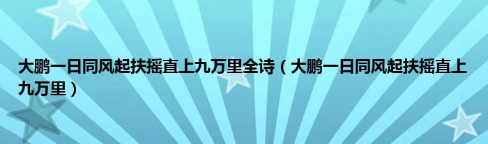 以上就是【大鹏一日同风起扶摇直上九万里全诗,大鹏一日同风起扶摇直上九万里】相关内容。