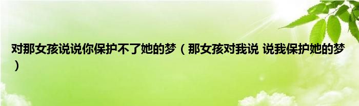 大家好,小问来为大家解答以上问题。对那女孩说说你保护不了她的梦,那女孩对我说 说我保护她的梦这个很多人还不知道,现在让我们一起来看看吧!