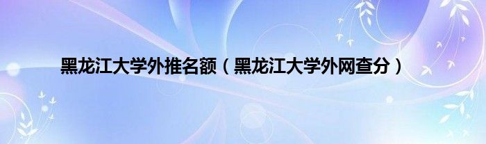 大家好,小问来为大家解答以上问题。黑龙江大学外推名额,黑龙江大学外网查分这个很多人还不知道,现在让我们一起来看看吧!