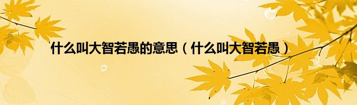 以上就是【什么叫大智若愚的意思,什么叫大智若愚】相关内容。