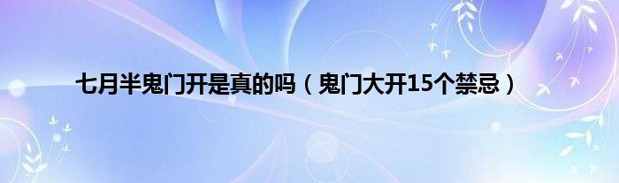 本文七月半鬼门开是真的吗,鬼门大开15个禁忌到此分享完毕,希望对大家有所帮助。