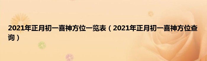 大家好,综合小编来为大家讲解下。2021年正月初一喜神方位一览表,2021年正月初一喜神方位查询这个很多人还不知道,现在让我们一起来看看吧!