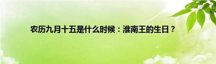 本文农历九月十五是什么时候:淮南王的生日?到此分享完毕,希望对大家有所帮助。