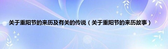 大家好,综合小编来为大家讲解下。关于重阳节的来历及有关的传说,关于重阳节的来历故事这个很多人还不知道,现在让我们一起来看看吧!