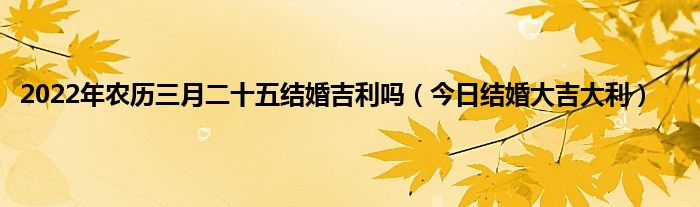 大家好,综合小编来为大家讲解下。2022年农历三月二十五结婚吉利吗,今日结婚大吉大利这个很多人还不知道,现在让我们一起来看看吧!