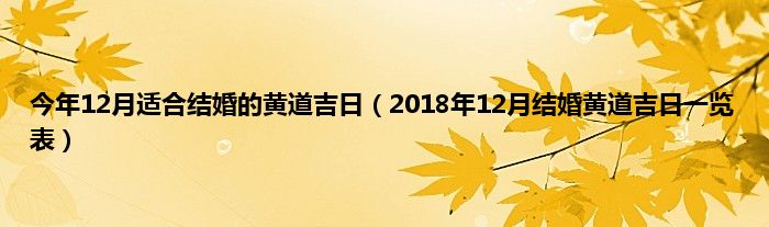 本文今年12月适合结婚的黄道吉日,2018年12月结婚黄道吉日一览表到此分享完毕,希望对大家有所帮助。