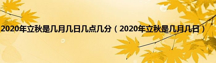 大家好,综合小编来为大家讲解下。2020年立秋是几月几日几点几分,2020年立秋是几月几日这个很多人还不知道,现在让我们一起来看看吧!