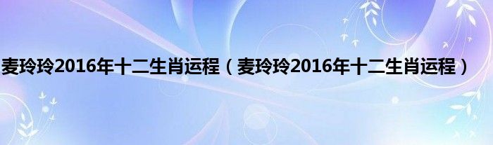 大家好,综合小编来为大家讲解下。麦玲玲2016年十二生肖运程,麦玲玲2016年十二生肖运程这个很多人还不知道,现在让我们一起来看看吧!