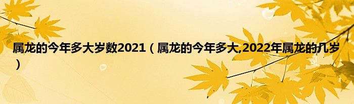 本文属龙的今年多大岁数2021,属龙的今年多大,2022年属龙的几岁到此分享完毕,希望对大家有所帮助。