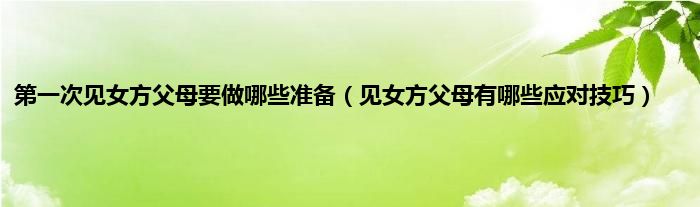 大家好,综合小编来为大家讲解下。第一次见女方父母要做哪些准备,见女方父母有哪些应对技巧这个很多人还不知道,现在让我们一起来看看吧!