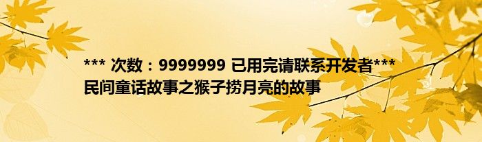 大家好,综合小编来为大家讲解下。*** 次数:9999999 已用完请联系开发者*** 民间童话故事之猴子捞月亮的故事这个很多人还不知道,现在让我们一起来看看吧!