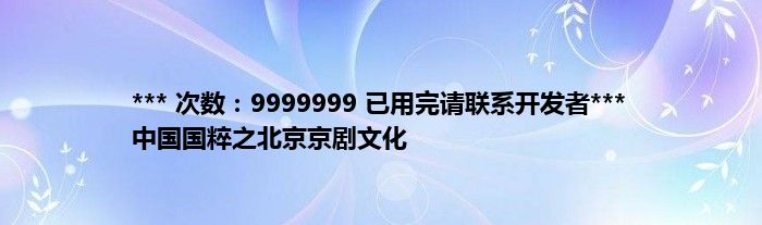 大家好,综合小编来为大家讲解下。*** 次数:9999999 已用完请联系开发者*** 中国国粹之北京京剧文化这个很多人还不知道,现在让我们一起来看看吧!