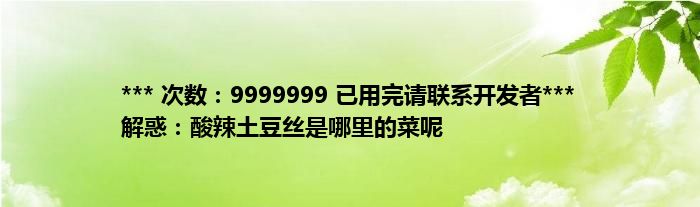 本文*** 次数:9999999 已用完请联系开发者*** 解惑:酸辣土豆丝是哪里的菜呢到此分享完毕,希望对大家有所帮助。