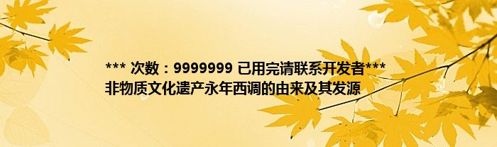 本文*** 次数:9999999 已用完请联系开发者*** 非物质文化遗产永年西调的由来及其发源到此分享完毕,希望对大家有所帮助。