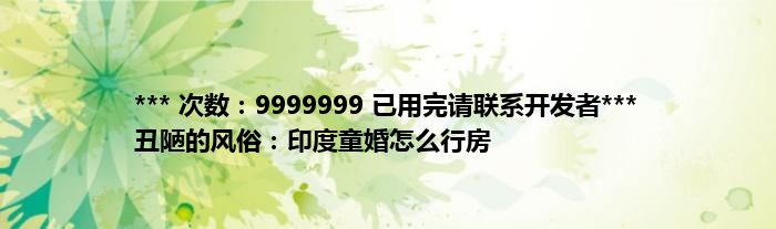 本文*** 次数:9999999 已用完请联系开发者*** 丑陋的风俗:印度童婚怎么行房到此分享完毕,希望对大家有所帮助。