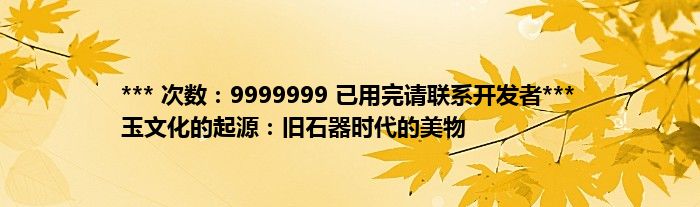大家好,综合小编来为大家讲解下。*** 次数:9999999 已用完请联系开发者*** 玉文化的起源:旧石器时代的美物这个很多人还不知道,现在让我们一起来看看吧!