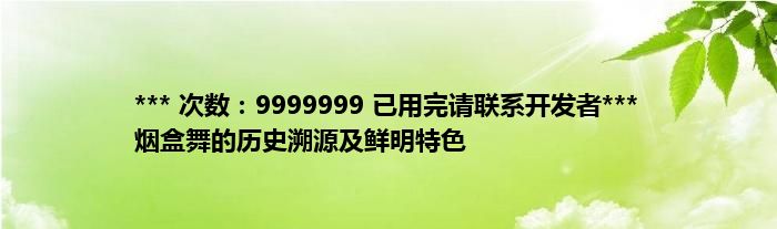 大家好,综合小编来为大家讲解下。*** 次数:9999999 已用完请联系开发者*** 烟盒舞的历史溯源及鲜明特色这个很多人还不知道,现在让我们一起来看看吧!