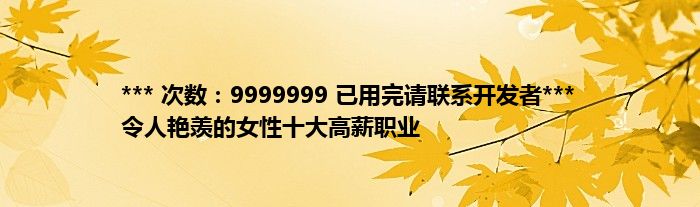 大家好,综合小编来为大家讲解下。*** 次数:9999999 已用完请联系开发者*** 令人艳羡的女性十大高薪职业这个很多人还不知道,现在让我们一起来看看吧!