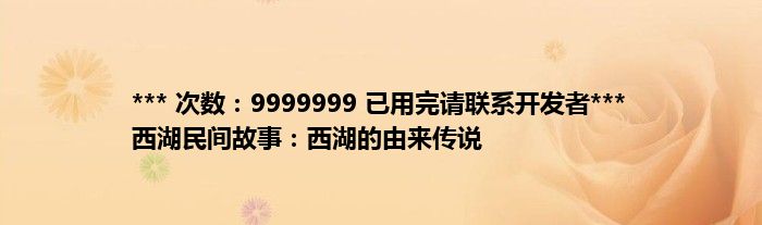 大家好,综合小编来为大家讲解下。*** 次数:9999999 已用完请联系开发者*** 西湖民间故事:西湖的由来传说这个很多人还不知道,现在让我们一起来看看吧!