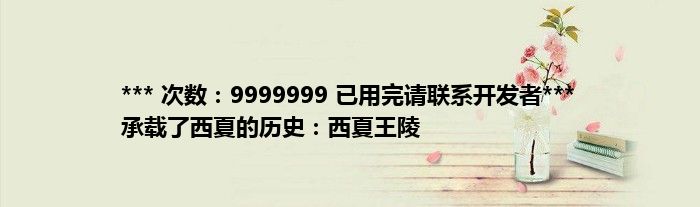 本文*** 次数:9999999 已用完请联系开发者*** 承载了西夏的历史:西夏王陵到此分享完毕,希望对大家有所帮助。
