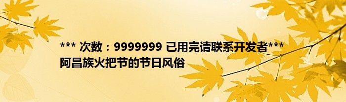 大家好,综合小编来为大家讲解下。*** 次数:9999999 已用完请联系开发者*** 阿昌族火把节的节日风俗这个很多人还不知道,现在让我们一起来看看吧!