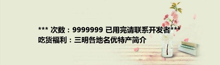 大家好,综合小编来为大家讲解下。*** 次数:9999999 已用完请联系开发者*** 吃货福利:三明各地名优特产简介这个很多人还不知道,现在让我们一起来看看吧!