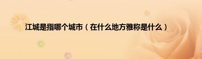 本文江城是指哪个城市,在什么地方雅称是什么到此分享完毕,希望对大家有所帮助。