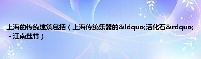 本文上海的传统建筑包括,上海传统乐器的“活化石”-江南丝竹到此分享完毕,希望对大家有所帮助。