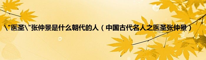 本文"医圣"张仲景是什么朝代的人,中国古代名人之医圣张仲景到此分享完毕,希望对大家有所帮助。