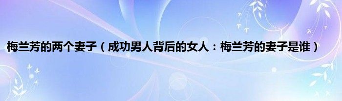 大家好,综合小编来为大家讲解下。梅兰芳的两个妻子,成功男人背后的女人:梅兰芳的妻子是谁这个很多人还不知道,现在让我们一起来看看吧!