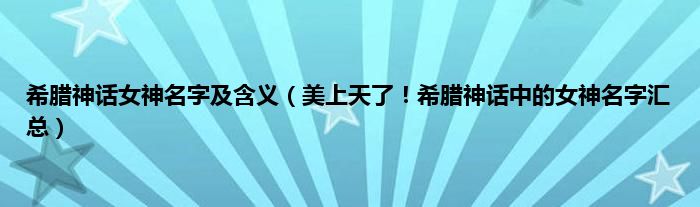 大家好,综合小编来为大家讲解下。希腊神话女神名字及含义,美上天了!希腊神话中的女神名字汇总这个很多人还不知道,现在让我们一起来看看吧!