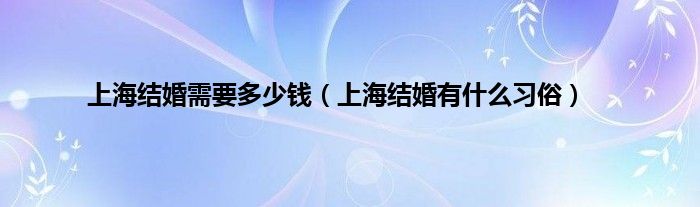 大家好,综合小编来为大家讲解下。上海结婚需要多少钱,上海结婚有什么习俗这个很多人还不知道,现在让我们一起来看看吧!