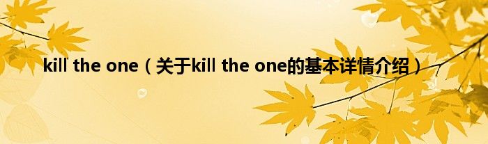 本文关于kill the one的基本详情介绍就讲解完毕,希望对大家有所帮助。