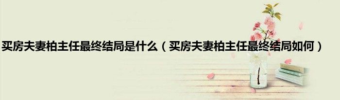 欢迎观看本篇文章,小升来为大家解答以上问题。买房夫妻柏主任最终结局是什么,买房夫妻柏主任最终结局如何很多人还不知道,现在让我们一起来看看吧!