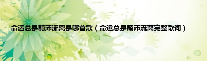 欢迎观看本篇文章,小升来为大家解答以上问题。命运总是颠沛流离是哪首歌,命运总是颠沛流离完整歌词很多人还不知道,现在让我们一起来看看吧!