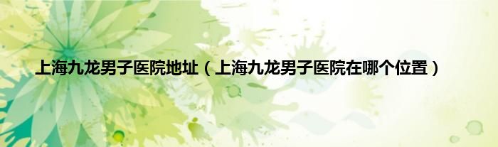 1、 上海九龙男子医院位于上海市长宁区中山西路333号。
