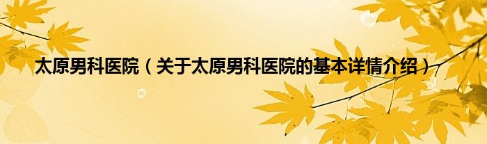 本文关于太原男科医院的基本详情介绍就讲解完毕,希望对大家有所帮助。