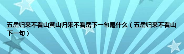 1、 五岳归来不看山,黄山归来不看岳,没有下一句。五岳归来不看山,下一句是黄山归来不看山。