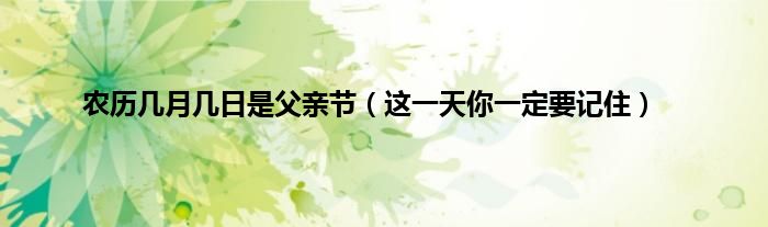 欢迎观看本篇文章,小升来为大家解答以上问题。农历几月几日是父亲节,这一天你一定要记住很多人还不知道,现在让我们一起来看看吧!