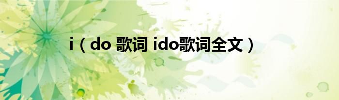 欢迎观看本篇文章,小升来为大家解答以上问题。i,do 歌词 ido歌词全文很多人还不知道,现在让我们一起来看看吧!