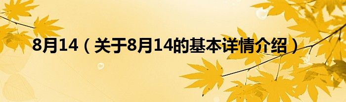 本文关于8月14的基本详情介绍就讲解完毕,希望对大家有所帮助。